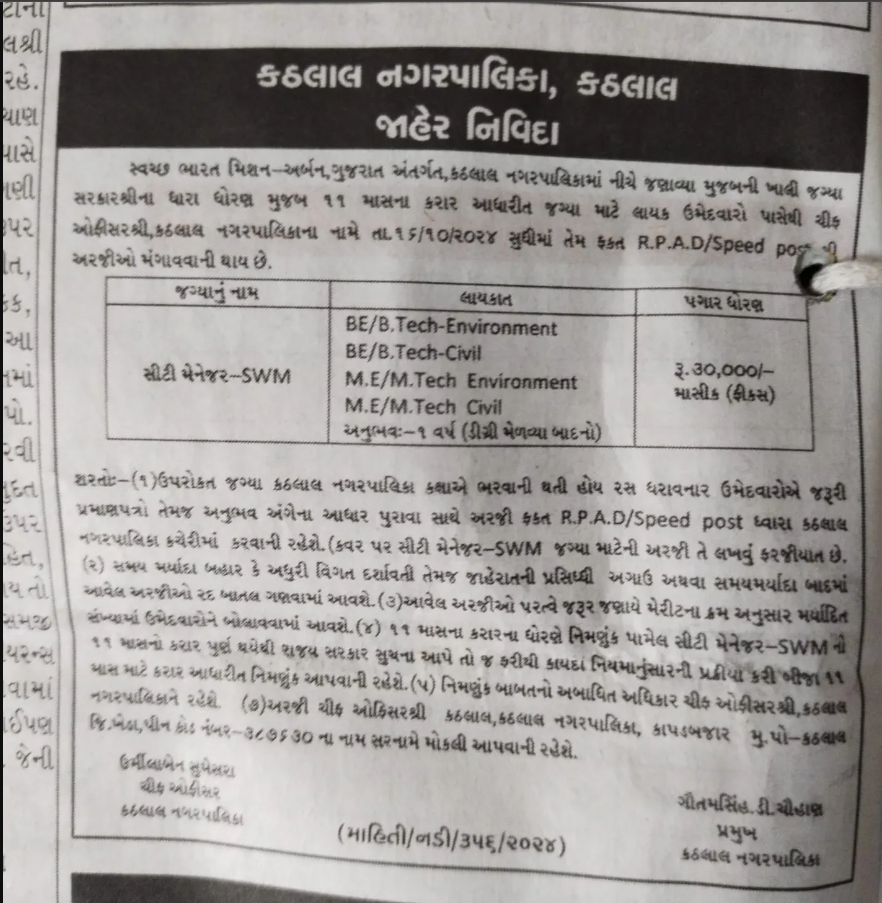Kathlal nagarpalika recruitment 2024 |